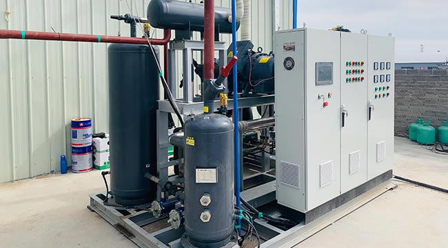 由于使用潤滑油使機器的冷卻使用和密封性能得到改善,排氣溫度降低,即使蒸發(fā)溫度較低(-40℃)和壓縮比較高(25左右),仍然可以單運行,即在定范圍內可以代替兩壓縮循環(huán)。